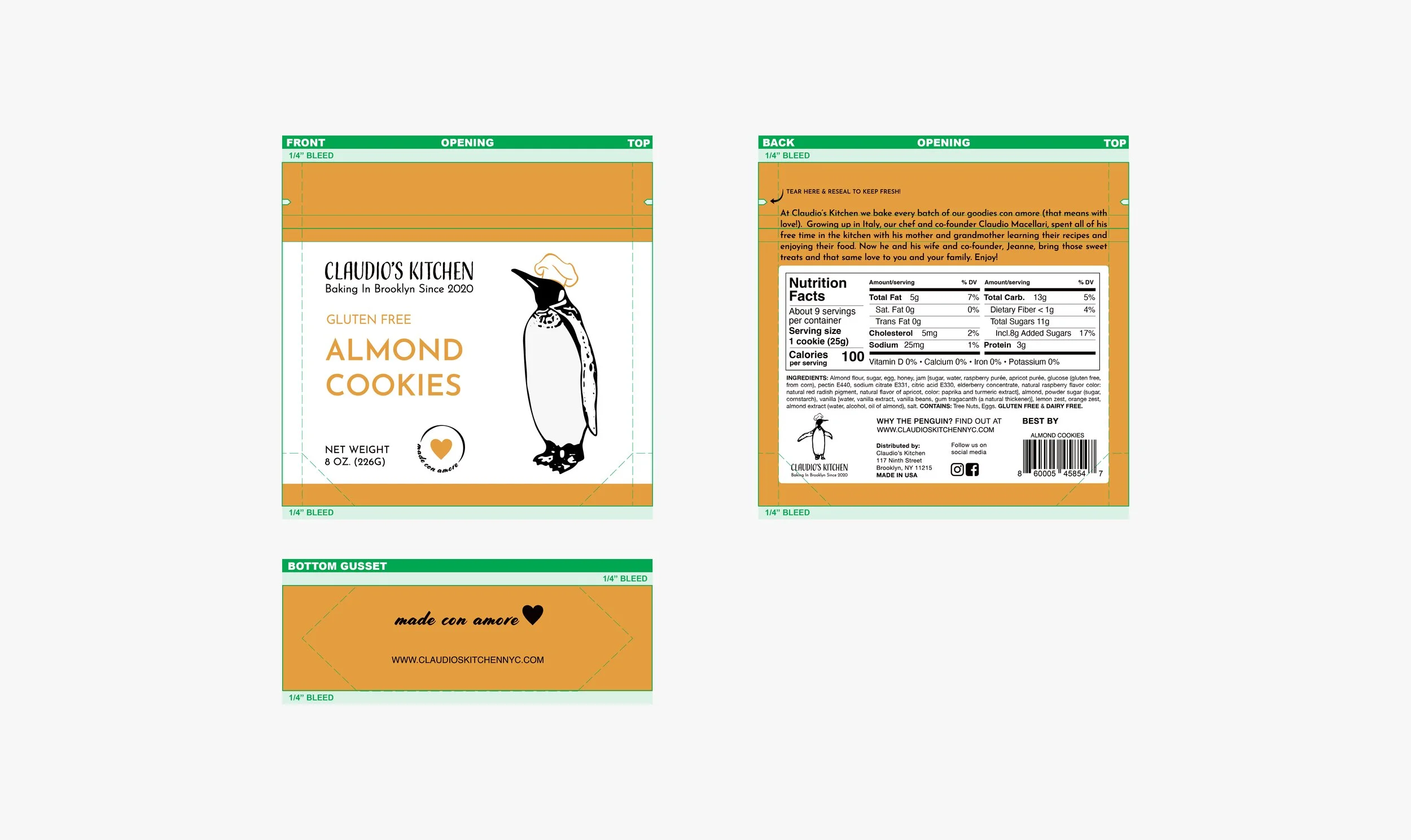 Claudio’s Kitchen produces exceptionally delicious cookies, but the original graphics and packaging, created by the founders, did not convey this quality or communicate a compelling brand story. The brand had a playful penguin logo that resonated with the founders but lacked the sophistication and meaning needed to engage customers effectively.