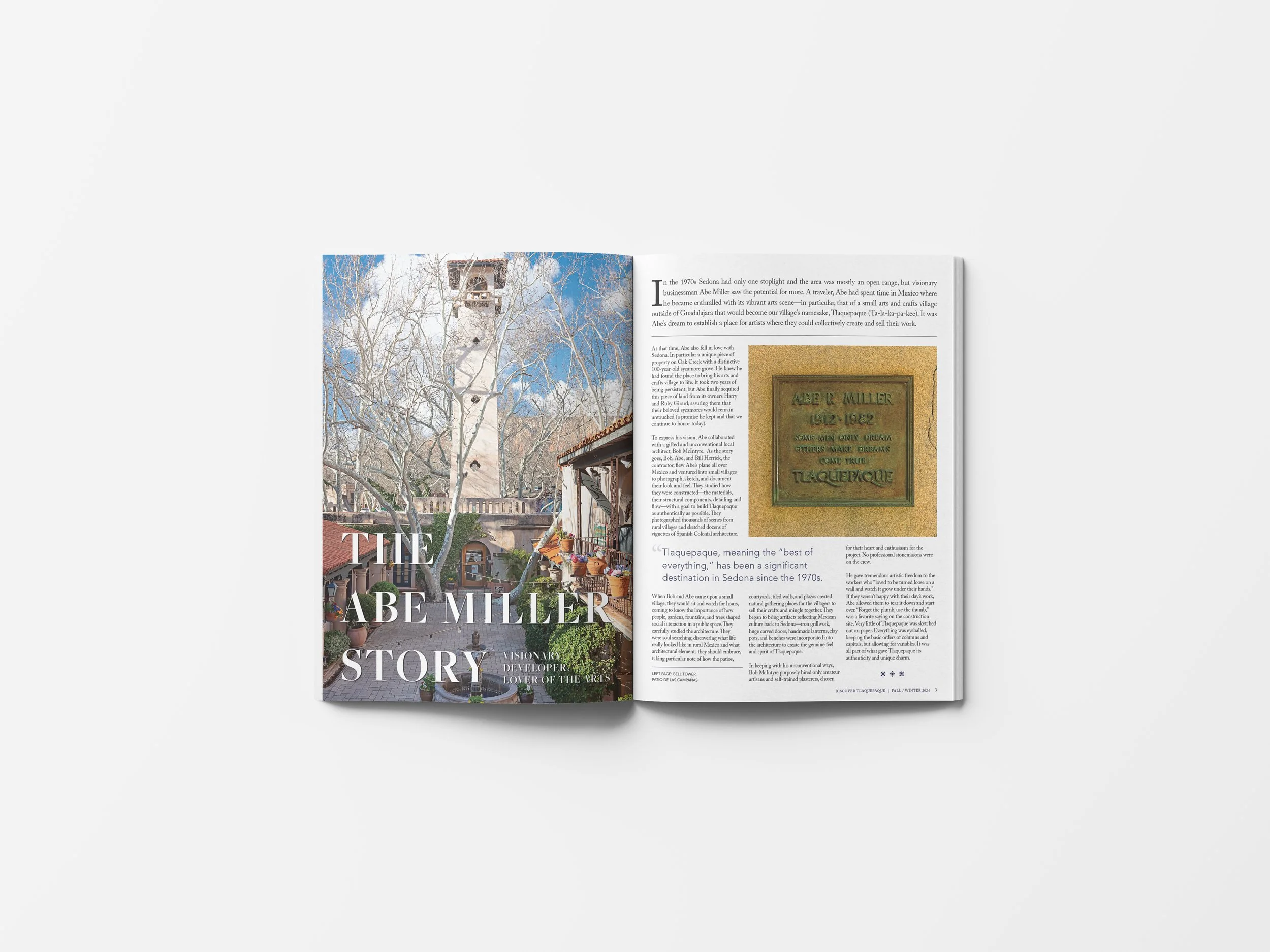 Tlaquepaque Arts & Shopping Village, a celebrated destination in Sedona, Arizona since 1973, brings together art, shopping, dining, and cultural experiences within a storied, historic setting. After a recent brand elevation, Discover Tlaquepaque magazine needed a visual transformation to mirror the sophistication of Tlaquepaque’s evolved identity.
